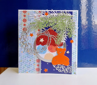 Вы любите в новогодних работах использовать глиттерную и фольгированную бумагу? Я знаю, что не все любят. А мне нравится блеск на открытках. :) Вот такую блестящую я и сотворила .
